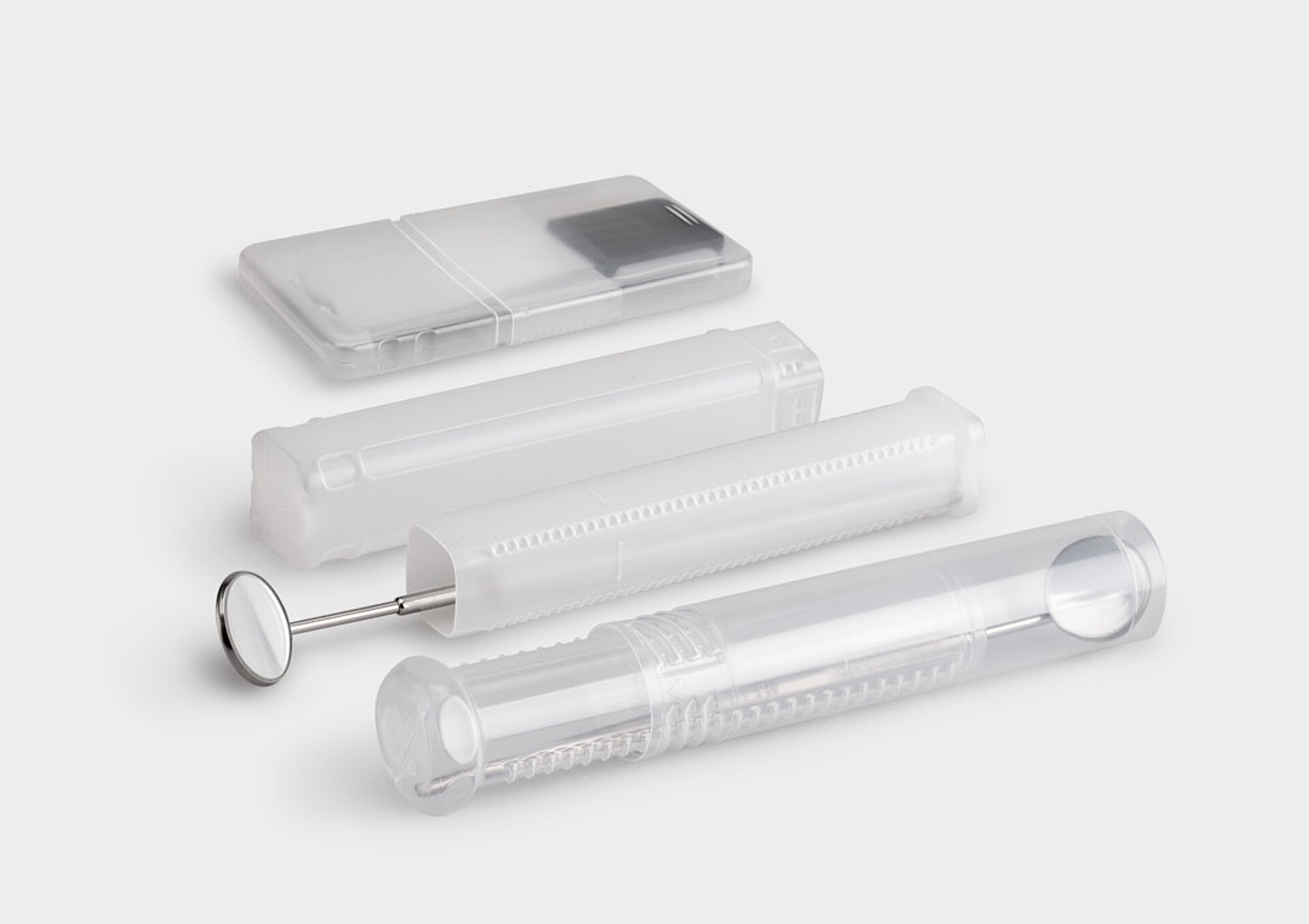 Hersteller von Dentalspiegeln greifen hier gerne zu unserem MultiPack für Dentalspiegel (auf Anfrage erhältlich). Aber auch in unserer Kunststoffhülse RechteckPack sind Ihre Dentalspiegel bestens versorgt. Die Hülse verfügt über eine stufenlose Längenverstellung und eignet sich so perfekt für Inhalte unterschiedlicher Abmessungen.
